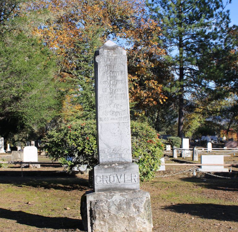 Luther Perry Grover passed away in Potter Valley on August 8, 1909, at the age of 85. Mary Ann Grover followed on June 18, 1918, at age 74. Today, Luther rests in the family plot alongside both of his wives, two of his children, and other beloved family members — a quiet testament to a life of pioneering spirit, enduring love, and generations of legacy rooted in the soil of Potter Valley.